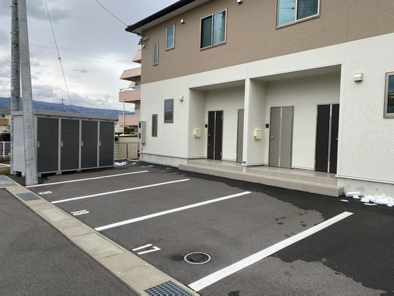 | 備考 | 物置付きです。青いツートンのアパートはメゾンK1、奥のアパートがK3です。 | ||